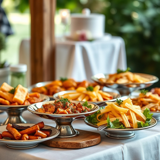 An eurem großen Tag soll einfach alles stimmen – vor allem das Essen. Wir gestalten für euch ein festliches Hochzeitsmenü oder ein abwechslungsreiches Buffet, das eure Gäste begeistert und euch entlastet. Ob elegante Vorspeisen, warme Hauptgerichte, traumhafte Hochzeitstorten oder eine liebevoll gestaltete Candybar – wir sorgen dafür, dass jedes Detail euren Vorstellungen entspricht. Auch die passende Dekoration und Blumenarrangements stimmen wir gerne mit euch ab, damit euer Fest ein stimmiges Gesamtbild bekommt.